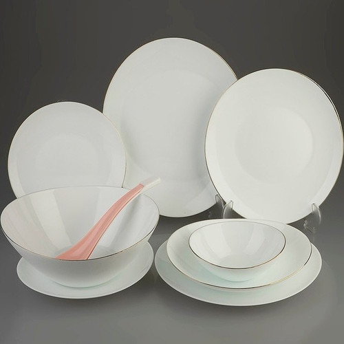 سرویس غذاخوری ۳۳ پارچه بلور مدل سولو لب طلایی