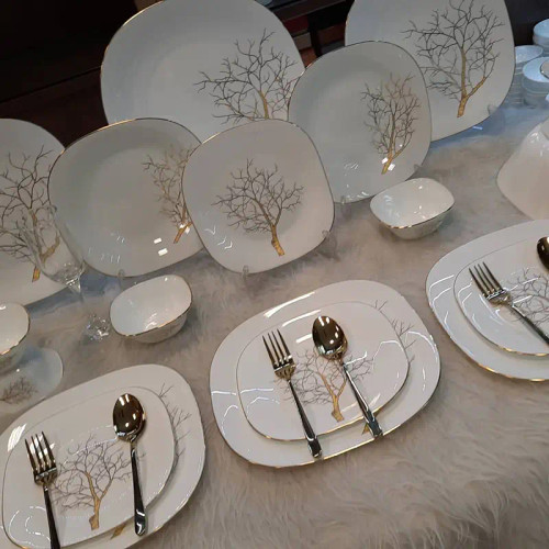 سرویس ارکوپال ۲۶ پارچه مدل مربع درخت طلا لب طلایی