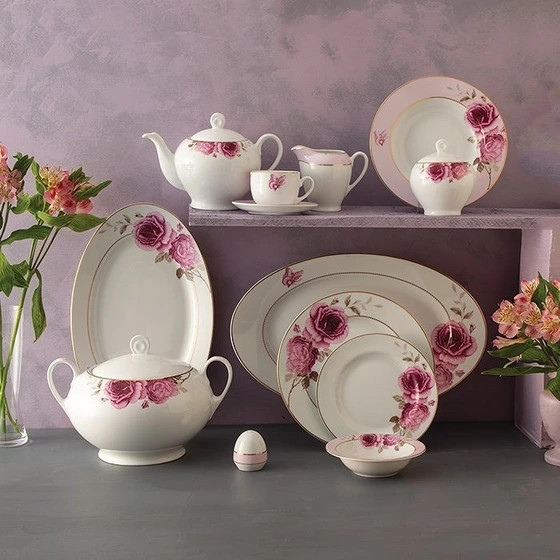 سرویس غذاخوری ۱۰۲ پارچه چینی زرین مدل رز فلاور