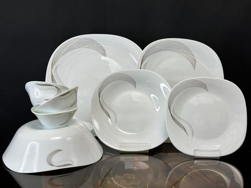 سرویس ارکوپال ۲۶ پارچه مربع مدل ژالین لب طلا