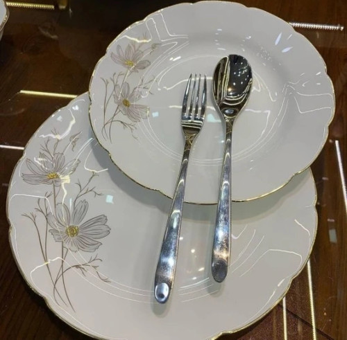 سرویس غذاخوری ۳۳ پارچه بلور مدل سولو لب طلایی